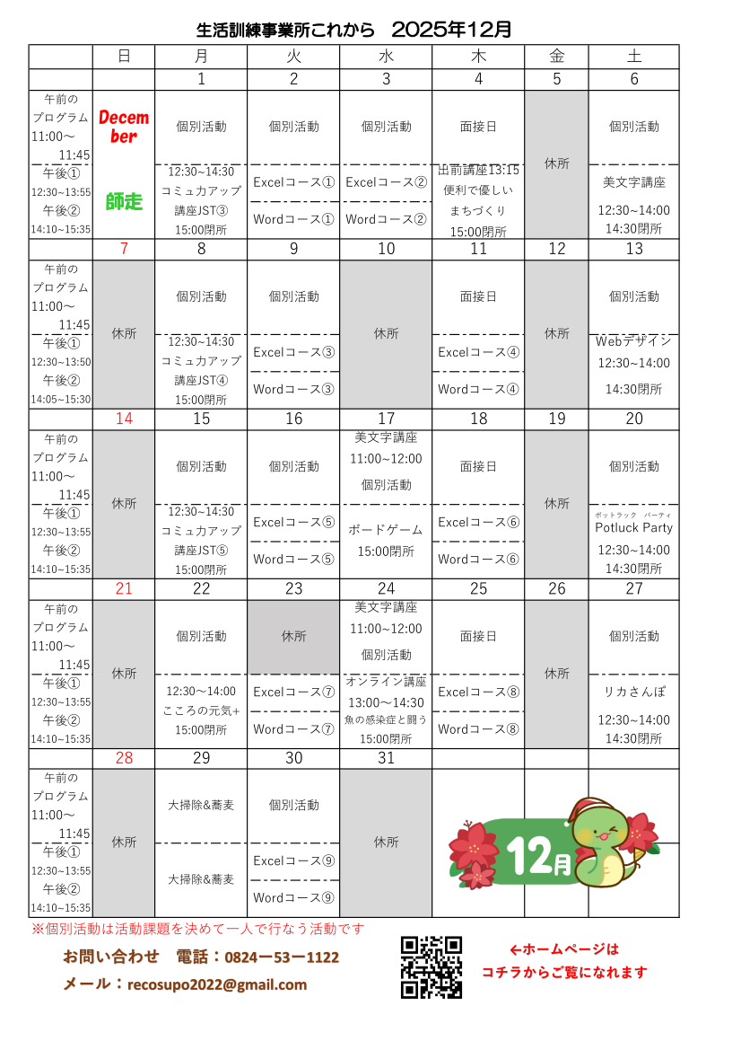 ※12月2日(火)から「PC講座」Excelコース、Wordコースが始まります。